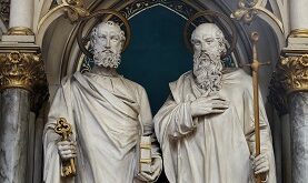 Bàn thạch Phê-rô trường tồn thay!Đồng trụ Phao-lô trường tồn đây! Đó là lời trích từ bài thánh ca của nhạc sĩ Hùng Lân và Hùng Thái Hoan mang tựa đề “Hai người tiên phong.” Lời của bài thánh ca diễn tả vai trò quan trọng của hai vị Tông đồ …