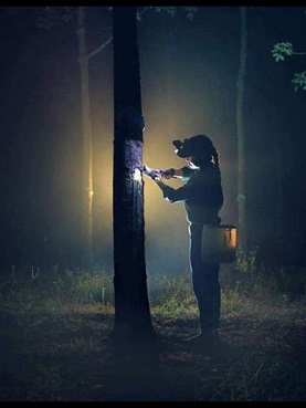 Khi tôi mới về giáo xứ, có lần đi xức dầu vào lúc 2 giờ sáng, đi ngang qua những cánh rừng cao su bạt ngàn, tôi thấy một cảnh tượng lạ lùng: những ánh đèn le lói ẩn hiện giữa màn đêm đặc quánh.  Tôi bấu vai ông trùm kêu lên… cái gì kìa?… và cuối cùng cũng chợt nhận ra: khi cả thế giới còn đang chìm trong giấc ngủ sâu, có những “vầng trăng nhỏ” bắt đầu lay động.  Đó là ánh đèn soi trên trán của những người cha, người mẹ làm nghề cạo mủ.  Họ đi vào bải lô khi trời còn chưa rõ mặt người.  Trong bóng tối lạnh lẽo và mùi mủ nồng nặc, họ lặng lẽ làm việc.  Dưới ánh đèn pin leo lét, bàn tay cha thoăn thoắt những nhát dao bén ngọt, chuẩn xác để dòng “vàng trắng” tinh khôi chảy đều vào bát sứ, đôi tay mẹ gầy guộc hứng trọn từng giọt mồ hôi rơi xuống cùng dòng mủ.  Họ chấp nhận thức, khi đời đang ngủ, chấp nhận bào mòn sức lực giữa cái lạnh thấu xương của sương đêm để đổi lấy manh áo, quyển vở cho con đến trường.  Quả là một sự hy sinh lớn lao.